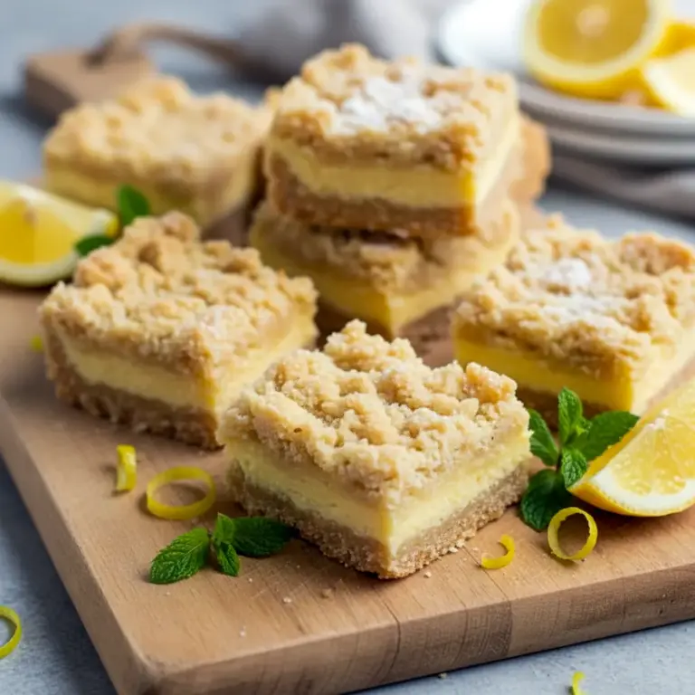 Bright, tangy, and smooth — these little squares taste like sunshine in dessert form. Imagine lemonade transformed into a melt-in-your-mouth treat with a buttery graham cracker base. Yep, that’s exactly what these bars deliver.