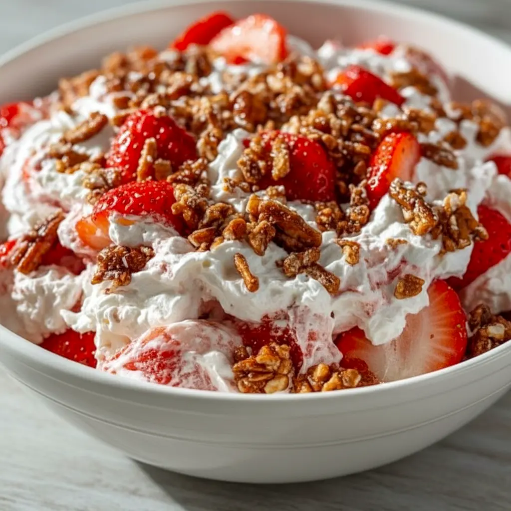 A crunchy-sweet no-bake dessert that marries buttery caramelized pretzel-pecan shards with a fluffy cream cheese filling and bright fresh strawberries. Spoonable, shareable, and totally addictive—great for potlucks or an easy weeknight treat.