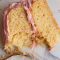 - Once the cakes are completely cooled, spread the strawberry buttercream between the layers and over the top.